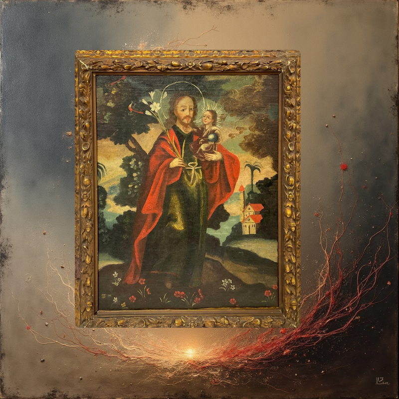 Con detalles dorados, vestimentas barrocas y rostros llenos de serenidad, nuestras pinturas no solo decoran: bendicen, conmueven y conectan con lo eterno.